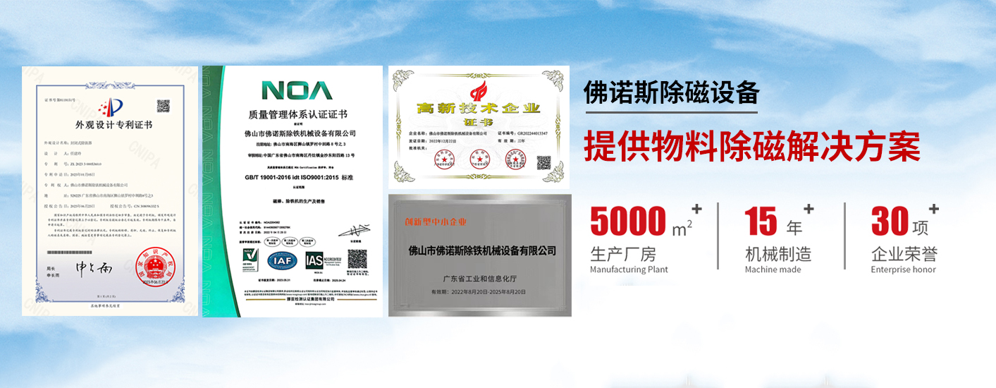 佛山市佛諾斯除鐵機(jī)械設(shè)備有限公司成立于2008年,已有17年除磁方案經(jīng)驗(yàn)。源頭磁選設(shè)備工廠,專注永磁除鐵器、電磁除鐵器、漿料磁選機(jī)、粉料磁選機(jī)、強(qiáng)磁除鐵器等磁選設(shè)備研發(fā)、生產(chǎn)和銷售。